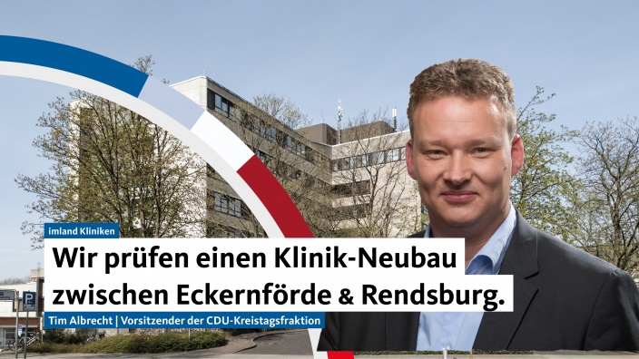 23.01.2022 imland Klinik bekommt ein zukunftfähiges Medizinkonzept Zukunft der imland gGmbH CDU-Kreistagsfraktion spricht sich für die Zukunftssicherung der Krankenhäuser in Eckernförde und Rendsburg aus...