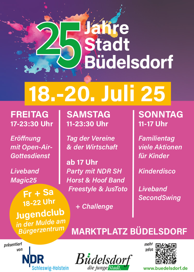 25 Jahre Stadt Büdelsdorf - wir sind dabei! Am Samstag, dem 19. Juli ist Tag der Vereine und Betriebe - besucht uns an unserem Stand im Bürgerzentrum!