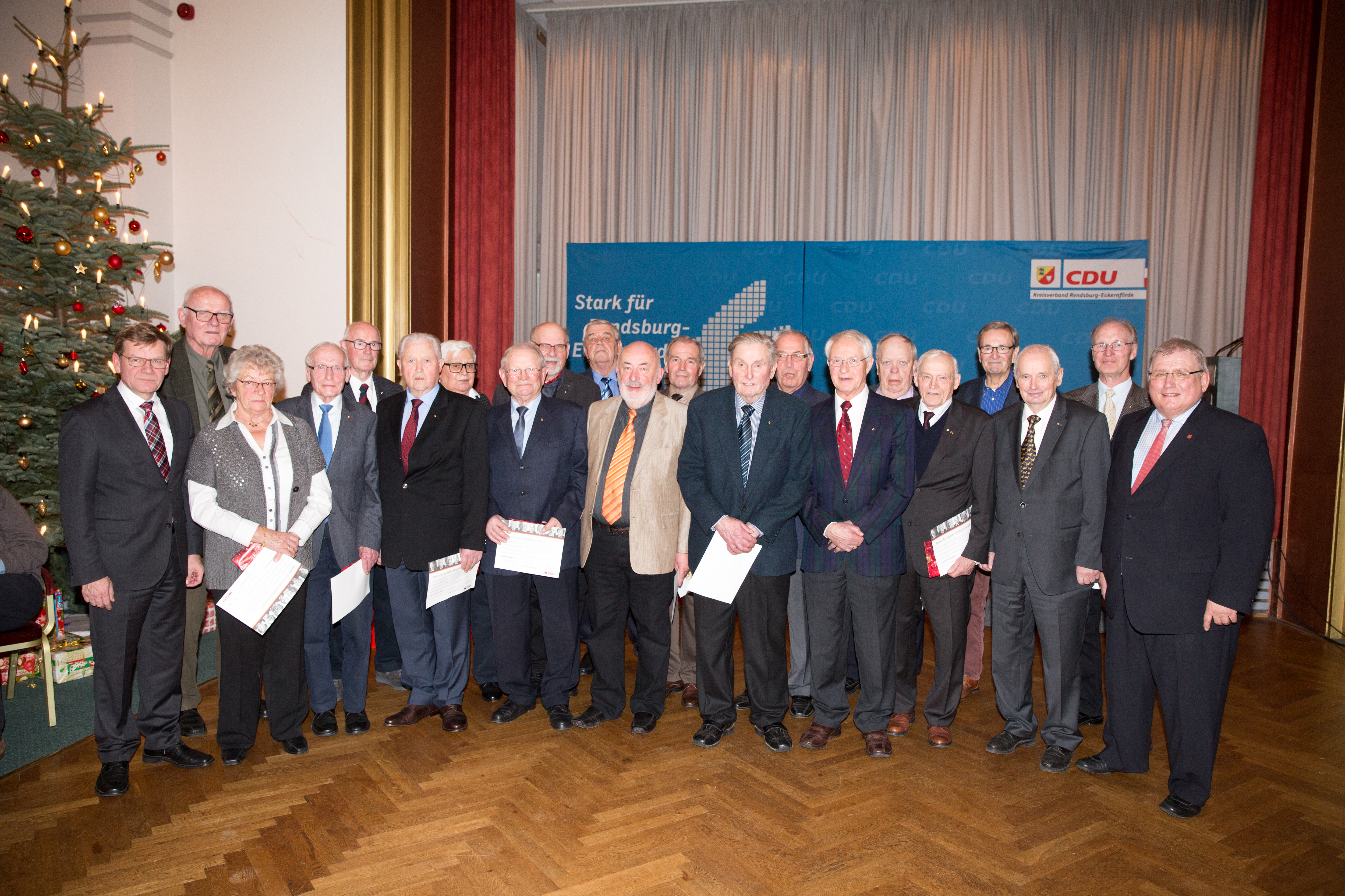 Gemeinsam mit dem Landtagspräsidenten Klaus Schlie, der den Wert der Demokratie in seiner Rede hervorhob, zeichneten Johann Wadephul und die örtlichen Landtagsabgeordneten Hans Hinrich Neve und Hauke Göttsch die Mitglieder für 25, 40 und 50-jährige Mitgliedschaft aus. Der Einladung zur Ehrung im Rahmen des Adventskaffees waren über 130 Mitglieder gefolgt.