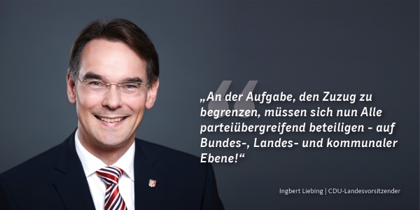 Der CDU-Landesvorsitzende nannte eine Visumspflicht als einen möglichen Schritt, den Zuzug aus diesen Ländern zu verringern. Abschließend appellierte Liebing: "An der Aufgabe, den Zuzug zu begrenzen, müssen sich nun alle parteiübergreifend beteiligen - auf Bundes-, Landes- und kommunaler Ebene!"