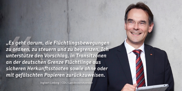 Liebing sagte, er unterstütze den Vorschlag, in Transitzonen an der deutschen Grenze diejenigen Personen zurückzuweisen, die erkennbar keinen Anspruch auf Schutz haben. Dazu zählten Flüchtlinge aus sicheren Herkunftsstaaten sowie solche ohne oder mit gefälschten Papieren.