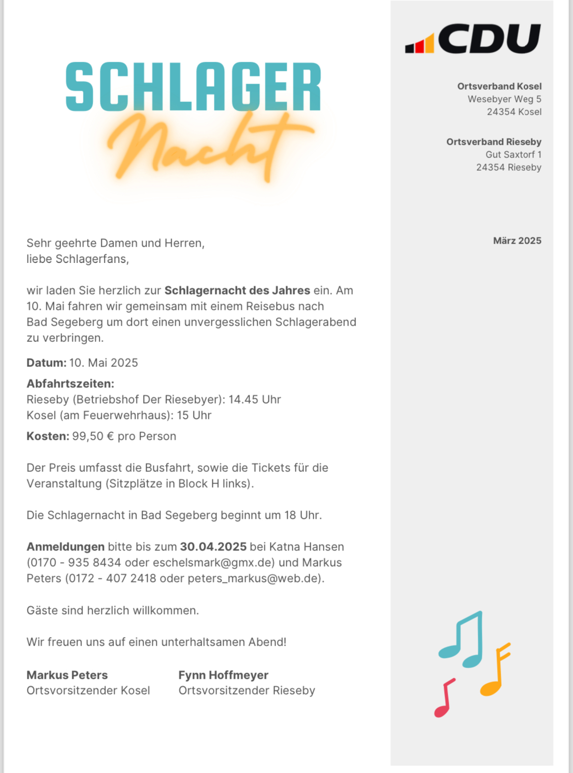 2. Schlager Nacht der OVs Kosel & Rieseby »
